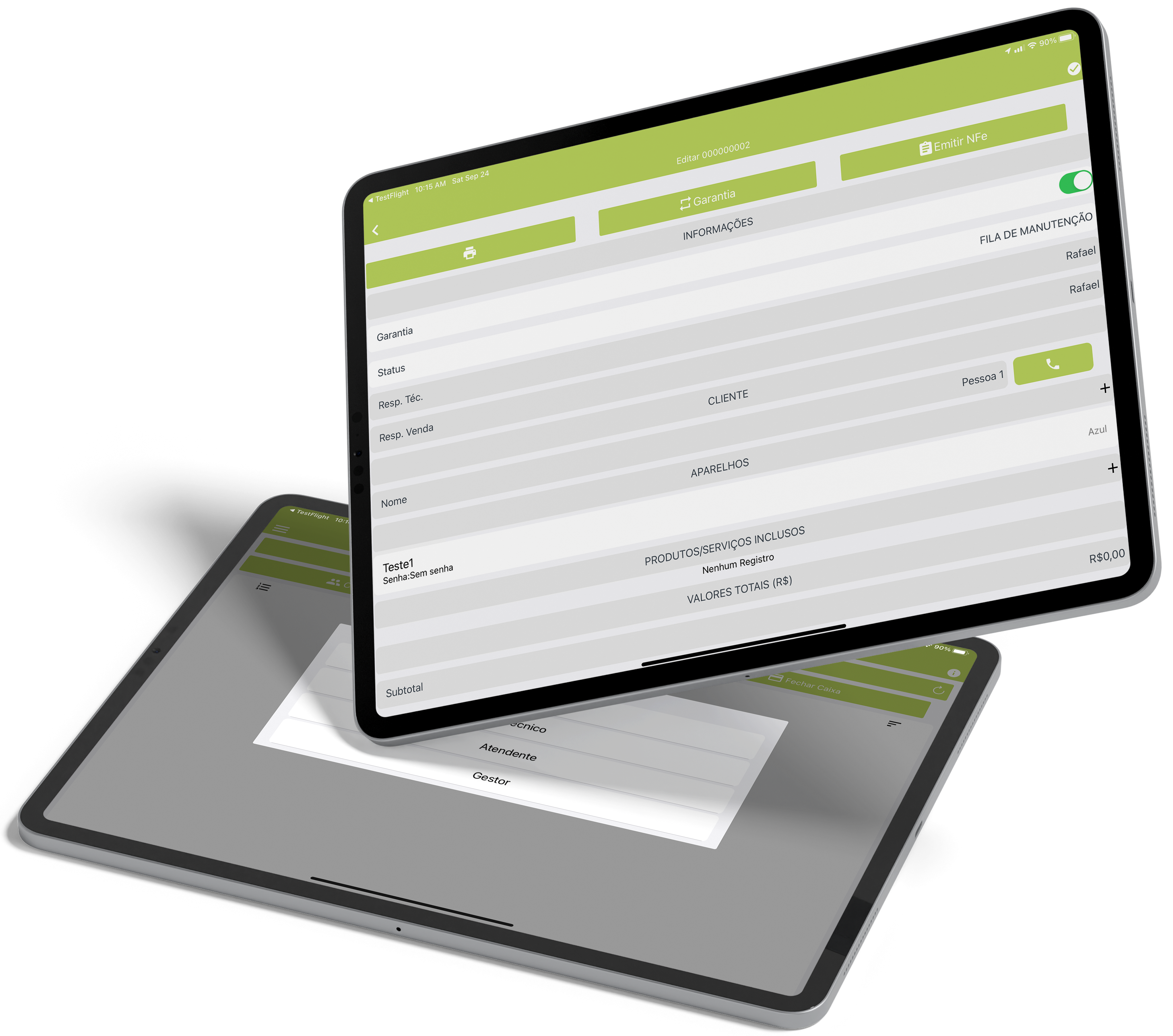 Tenha a opção de NF-e e NFS-e direto pelo App na hora da Venda e Ordem de Serviço, enviando diretamente pro cliente.